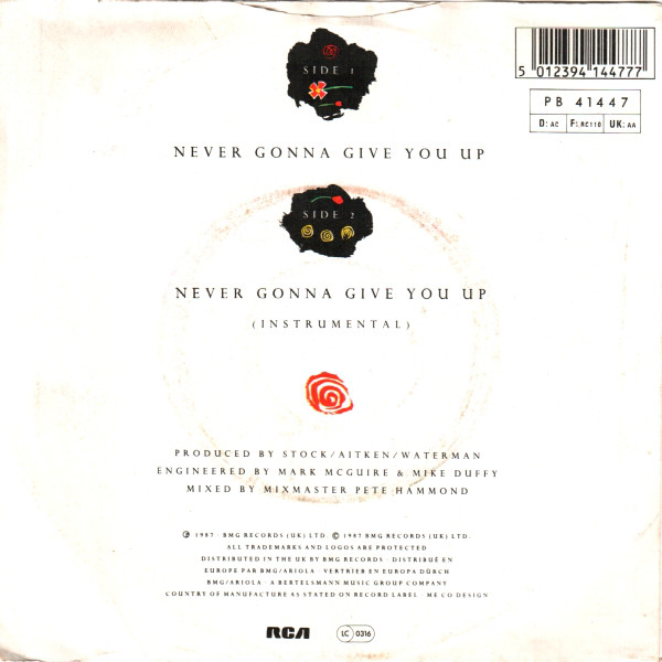 릭 애스틀리 데뷔 앨범 수록이에요.!!^__^ 빌보드 #1위 곡이구요..